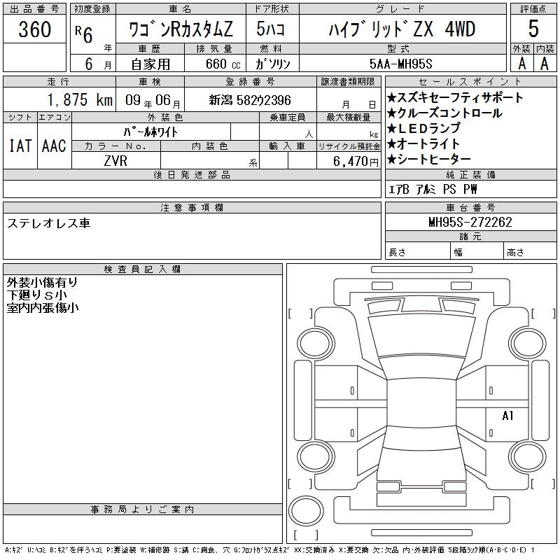 SUZUKI WAGON R CUSTOM Z HYBRID ZX 4WD - лот 360