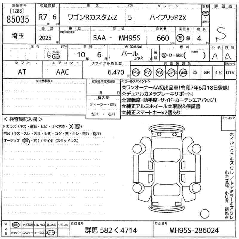 SUZUKI WAGON R CUSTOM Z HYBRID ZX - лот 85035