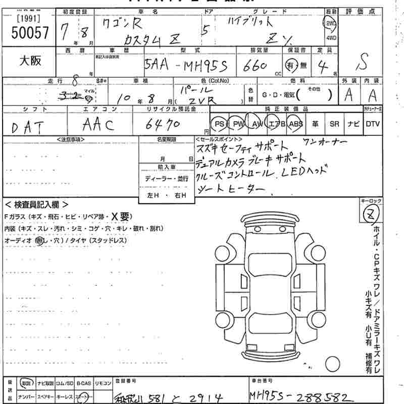 SUZUKI WAGON R CUSTOM Z HYBRID ZX - лот 50057