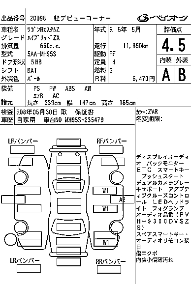 SUZUKI WAGON R CUSTOM Z HYBRID ZX - лот 20098