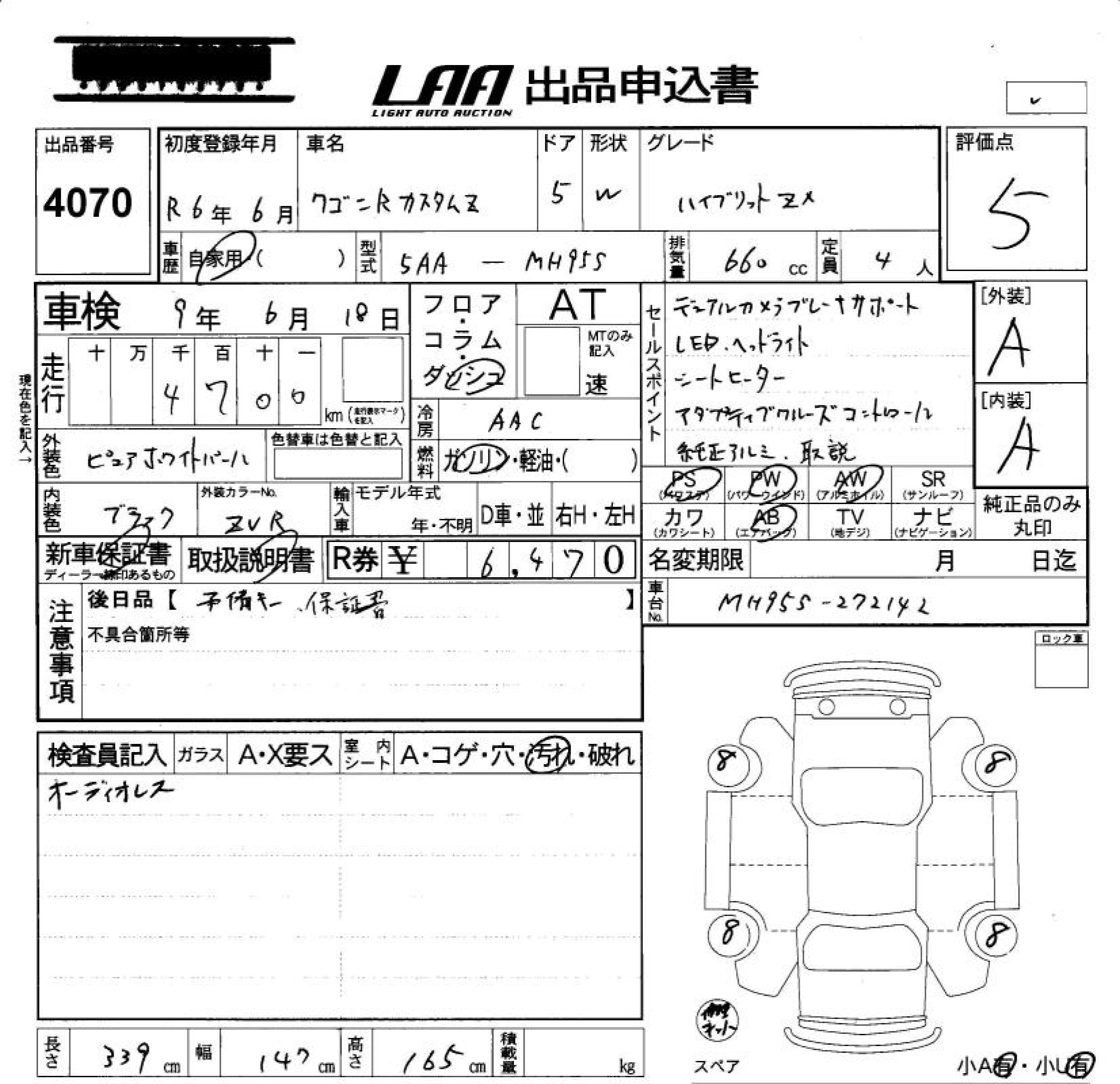 SUZUKI WAGON R CUSTOM Z HYBRID ZX - лот 4070