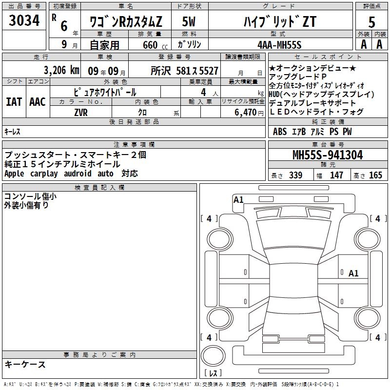 SUZUKI WAGON R CUSTOM Z HYBRID ZT - лот 3034