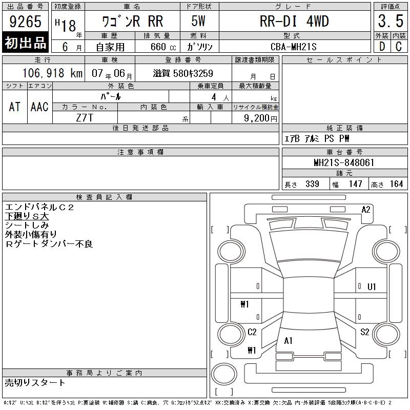 SUZUKI WAGON R RR RR-DI 4WD - лот 9265