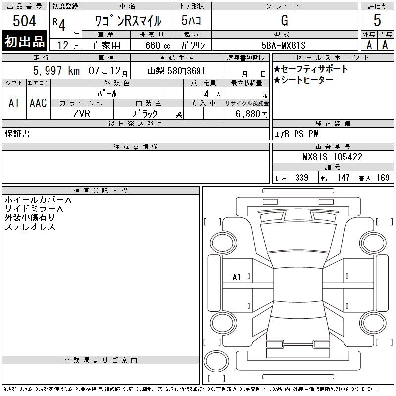 SUZUKI WAGON R SMILE G - лот 504