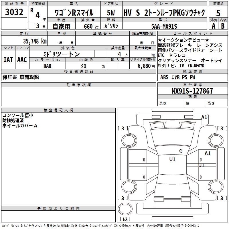 SUZUKI WAGON R SMILE HV S 2 TONE ROOF PKGSOU TEA K - лот 3032
