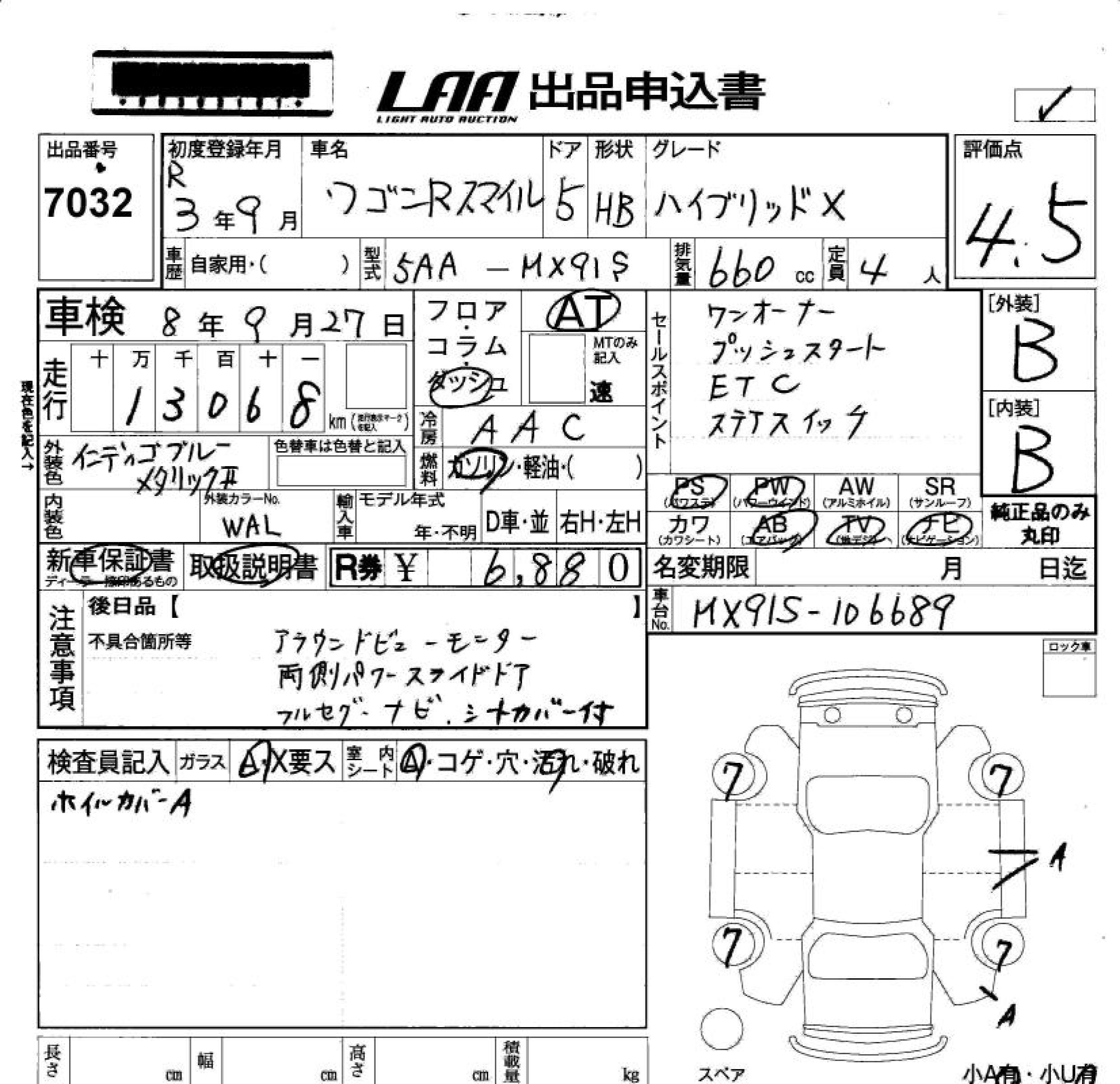 SUZUKI WAGON R SMILE HYBRID X - лот 7032