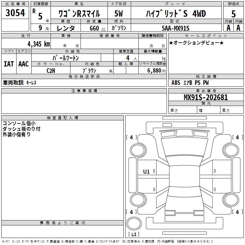 SUZUKI WAGON R SMILE HYBRID S 4WD - лот 3054