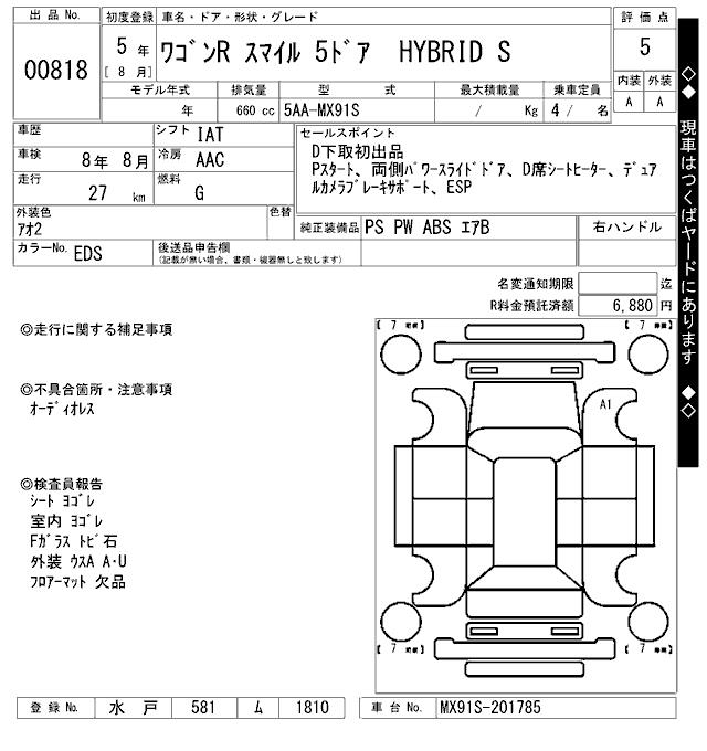 SUZUKI WAGON R SMILE HYBRID S - лот 818