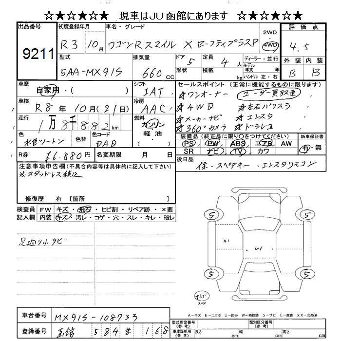 SUZUKI WAGON R SMILE 4WD X SAFETY PLUS P - лот 9211