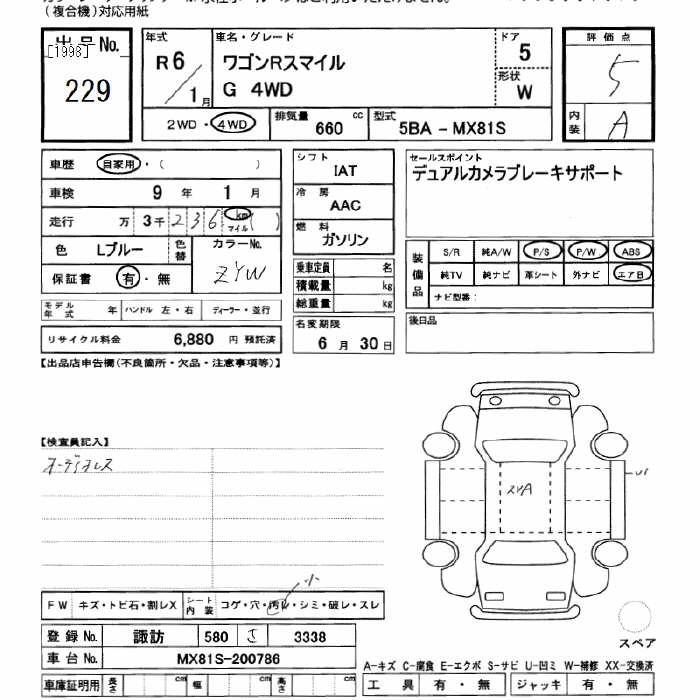 SUZUKI WAGON R SMILE 4WD G - лот 229