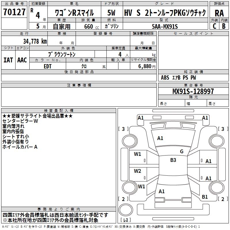 SUZUKI WAGON R SMILE HV S 2 TONE ROOF PKGSOU TEA K - лот 70127