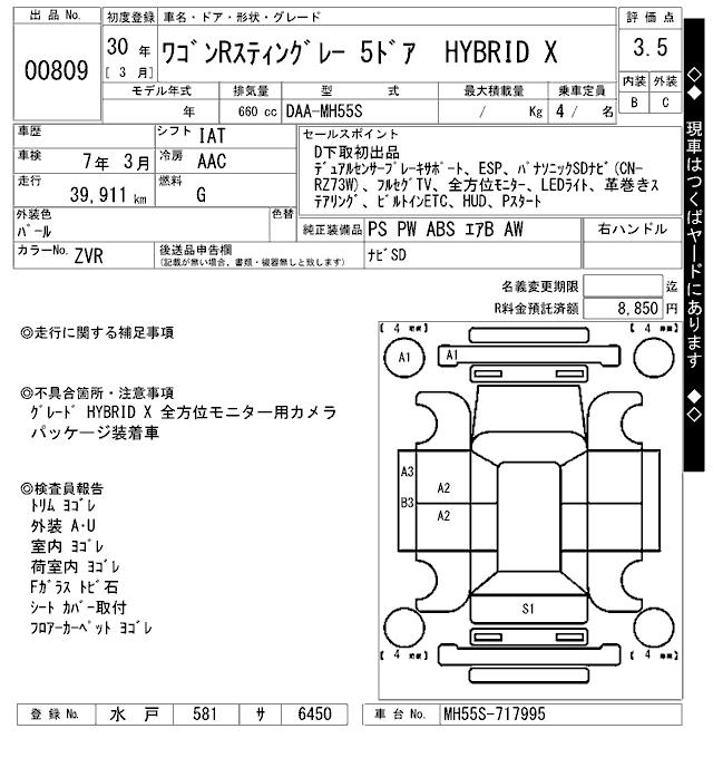 SUZUKI WAGON R STINGRAY - лот 809