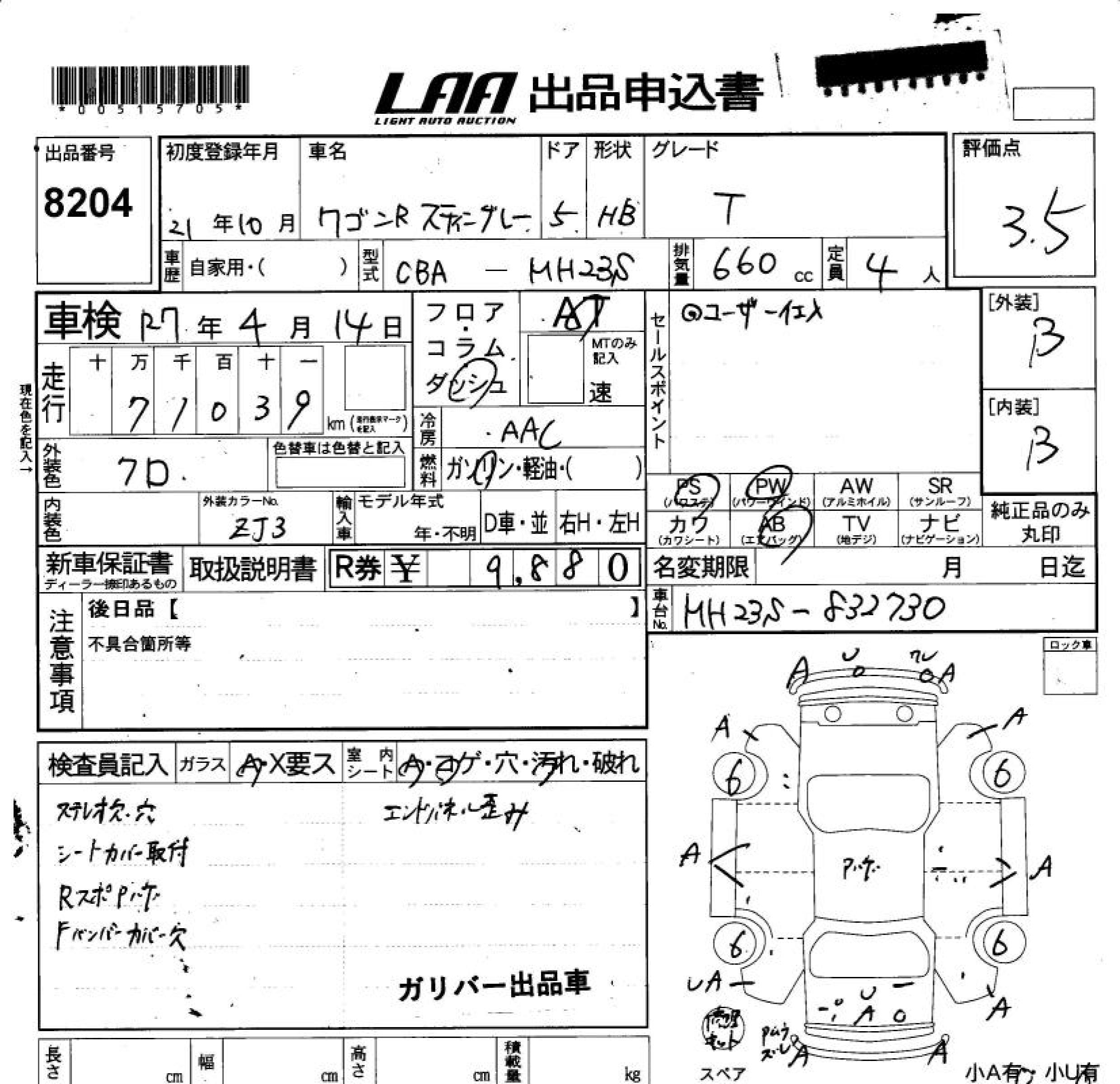 SUZUKI WAGON R STINGRAY - лот 8204