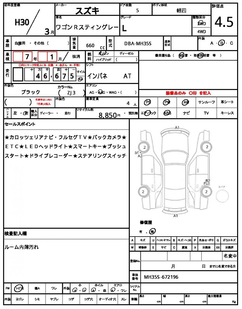 SUZUKI WAGON R STINGRAY - лот 51130