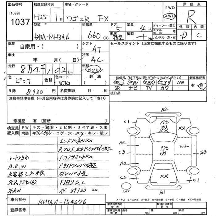 SUZUKI WAGON R 4WD FX - лот 1037