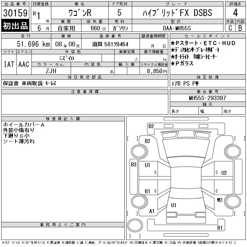 SUZUKI WAGON R HYBRID FX DSBS - лот 30159