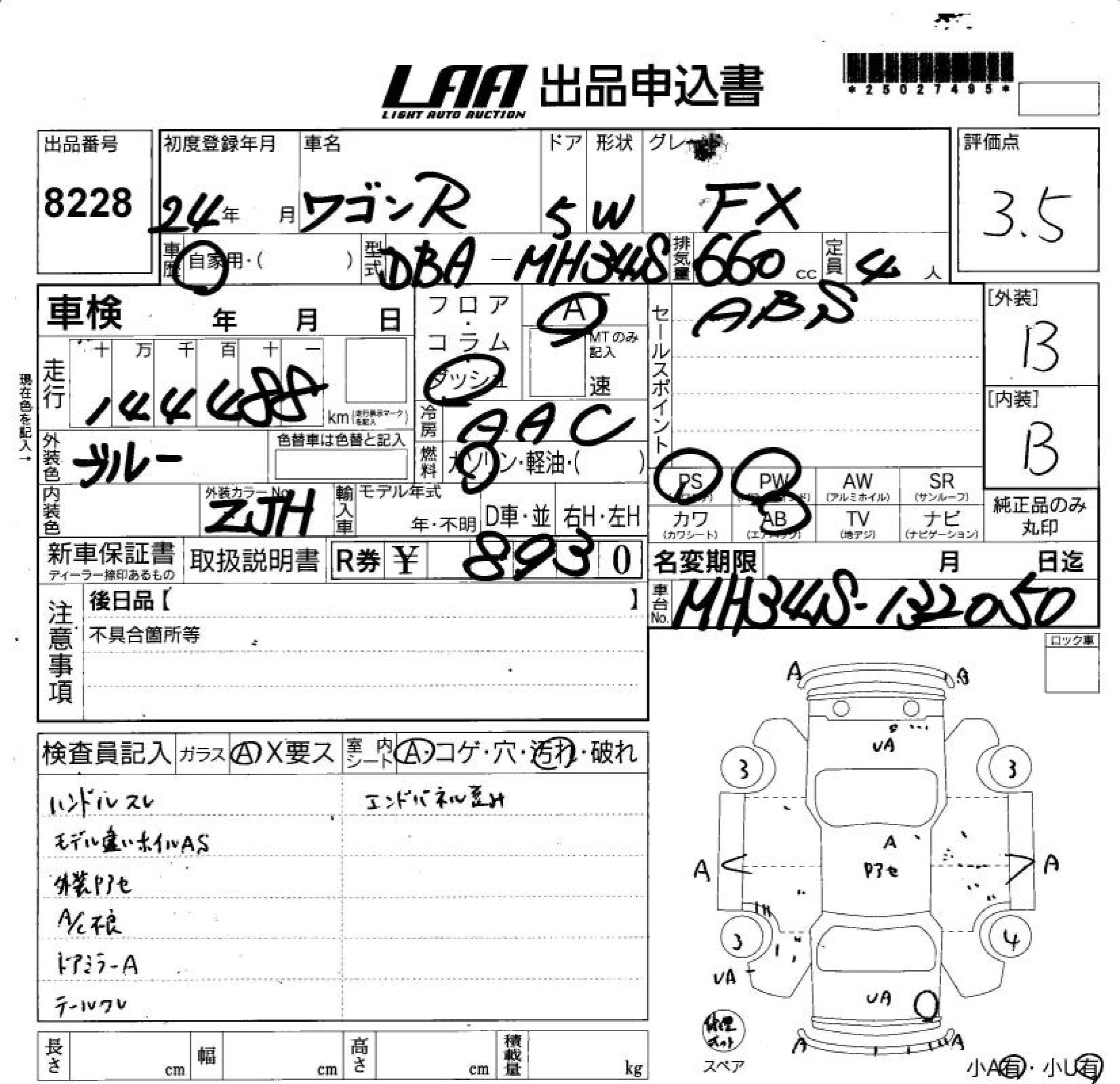 SUZUKI WAGON R FX - лот 8228