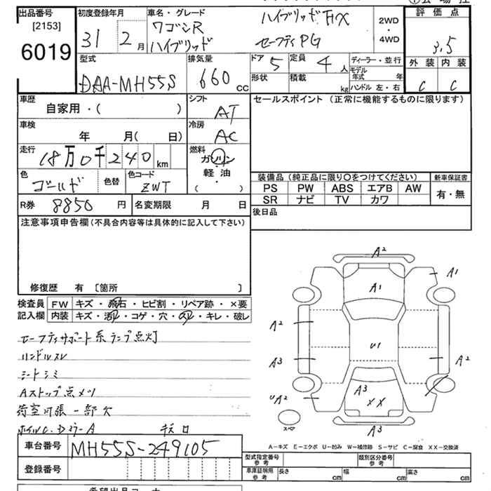 SUZUKI WAGON R HYBRID FX SAFETY PACKAGE SOU TEA K CAR - лот 6019