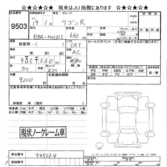 SUZUKI WAGON R - лот 9503