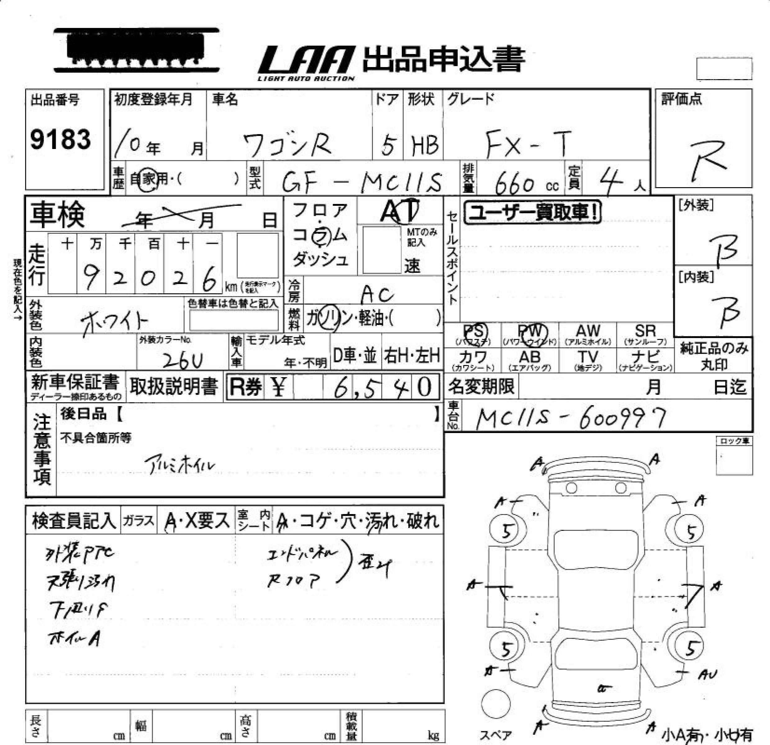SUZUKI WAGON R FX-T - лот 9183