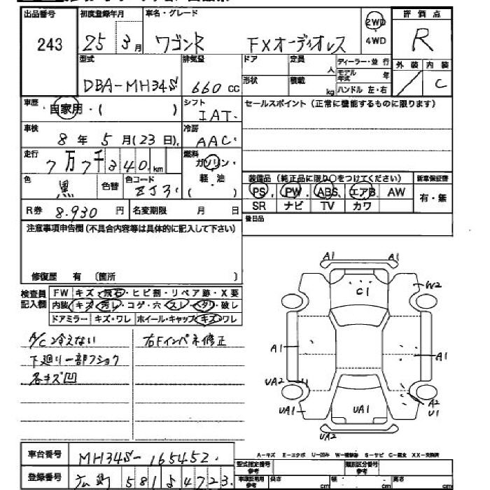 SUZUKI WAGON R FX WITHOUT AUDIO - лот 243