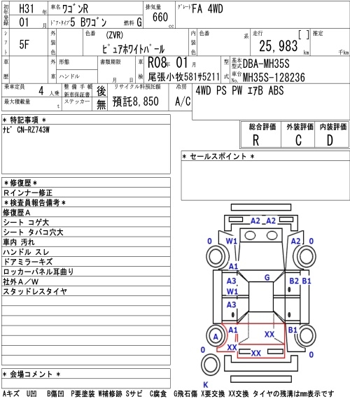SUZUKI WAGON R FA 4WD - лот 3019