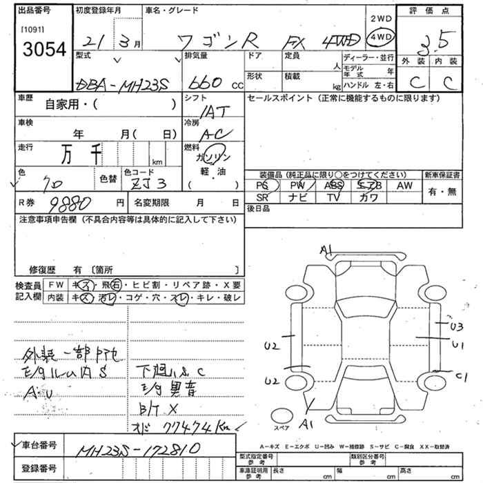 SUZUKI WAGON R 4WD FX - лот 3054