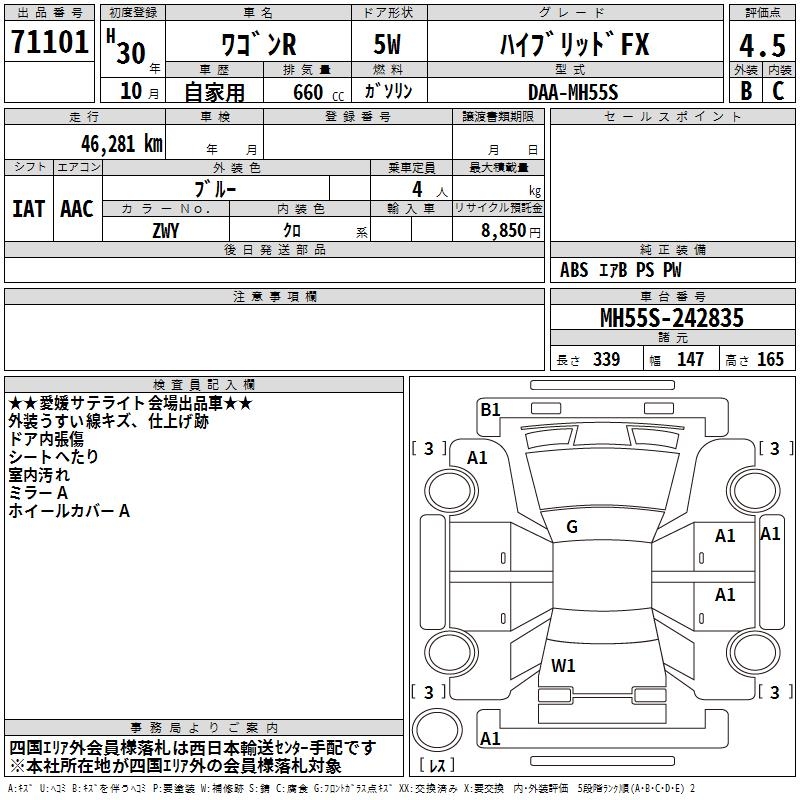 SUZUKI WAGON R HYBRID FX - лот 71101