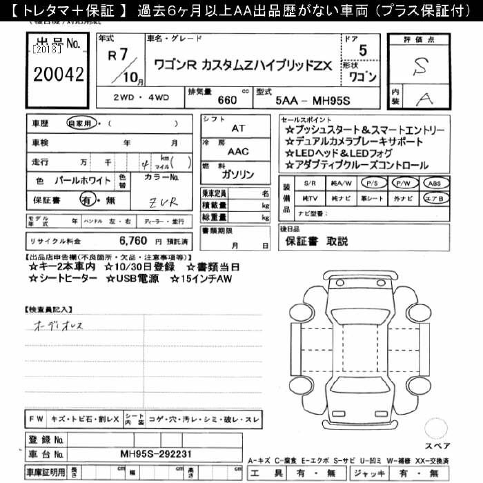 SUZUKI WAGON R CUSTOM Z HYBRID ZX - лот 20042