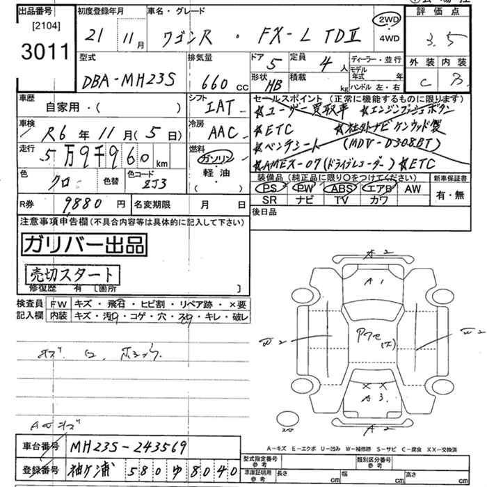 SUZUKI WAGON R - лот 3011