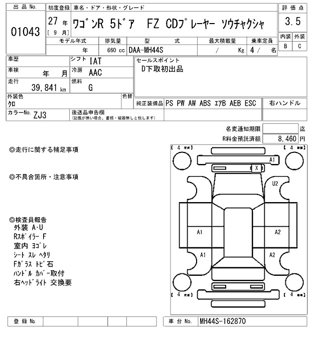 SUZUKI WAGON R - лот 1043