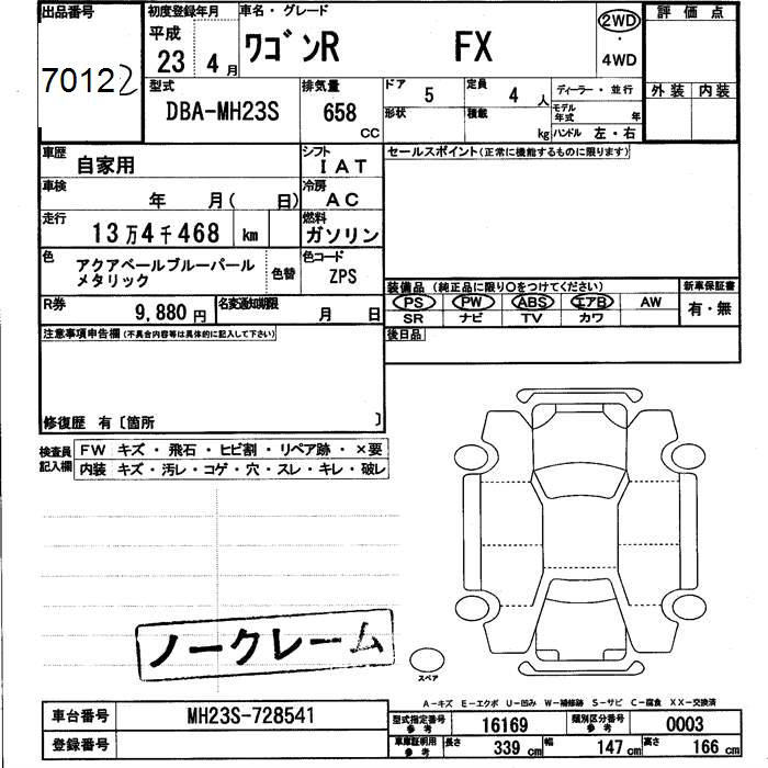 SUZUKI WAGON R - лот 7012