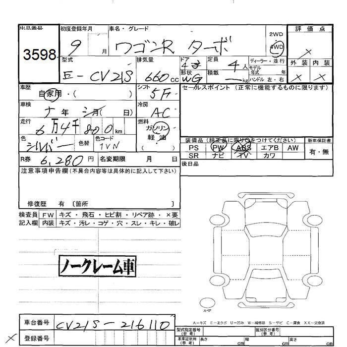 SUZUKI WAGON R - лот 3598