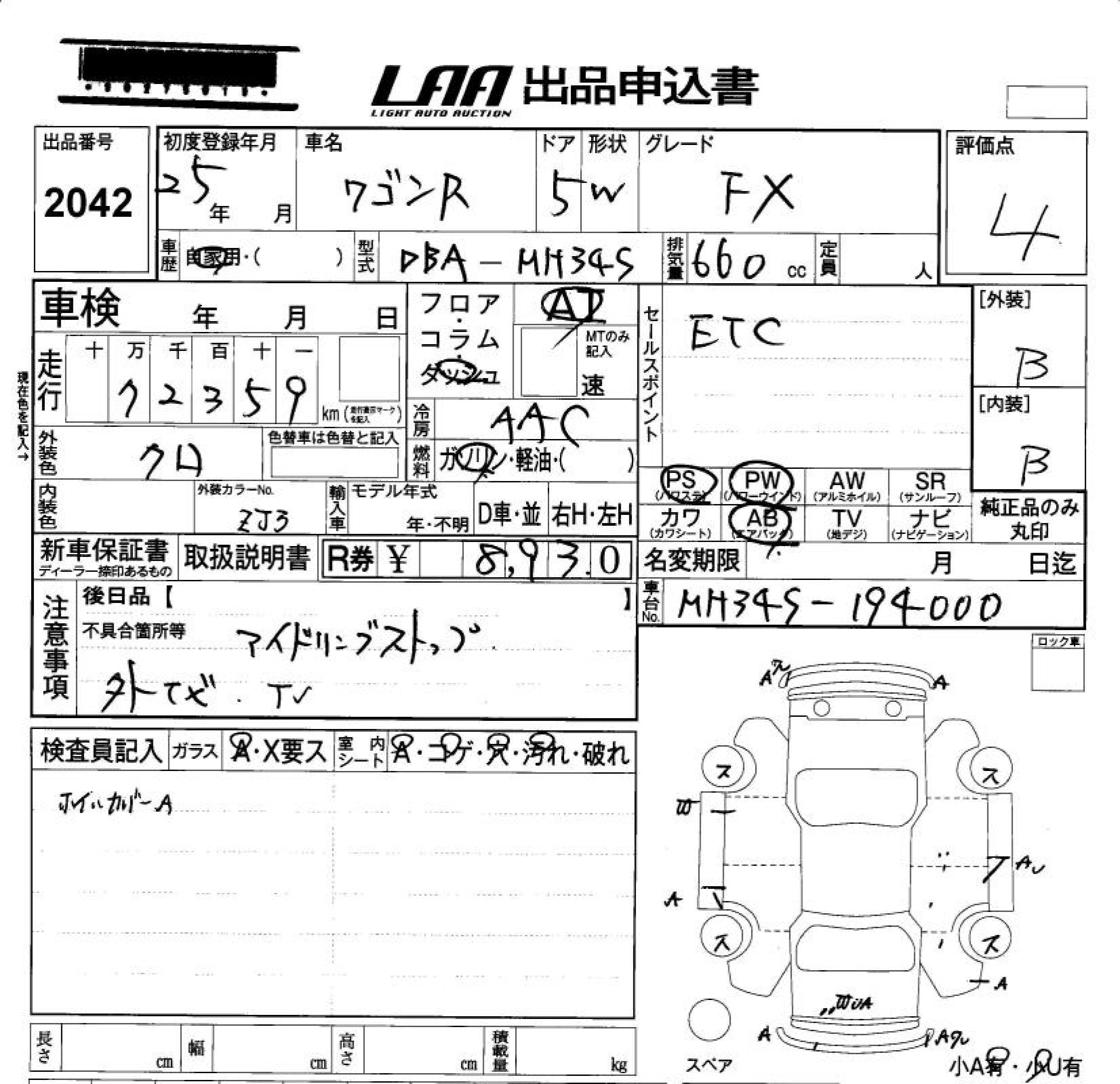 SUZUKI WAGON R - лот 2042