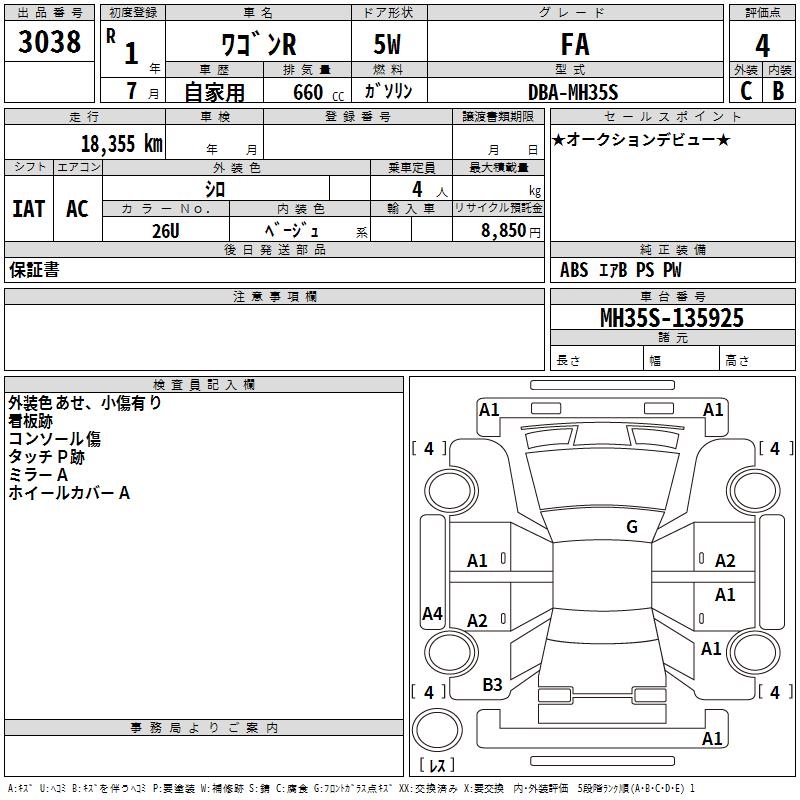 SUZUKI WAGON R - лот 3038