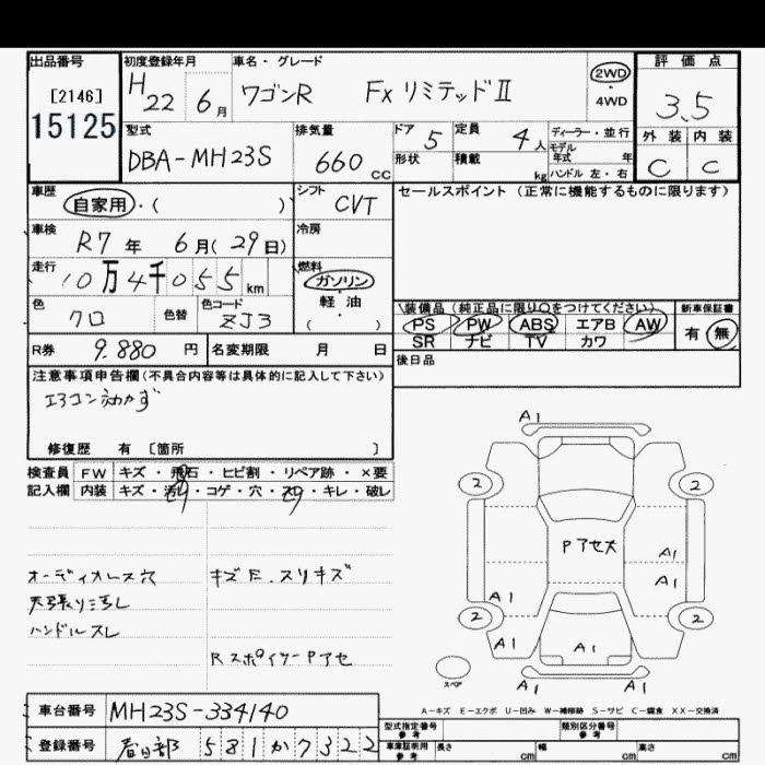 SUZUKI WAGON R - лот 15125