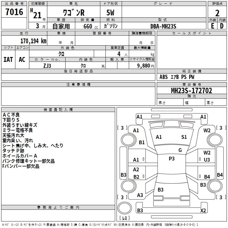 SUZUKI WAGON R - лот 7016