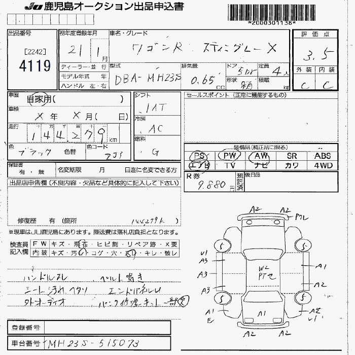 SUZUKI WAGON R - лот 4119
