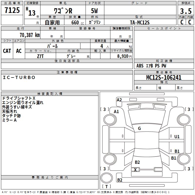 SUZUKI WAGON R - лот 7125
