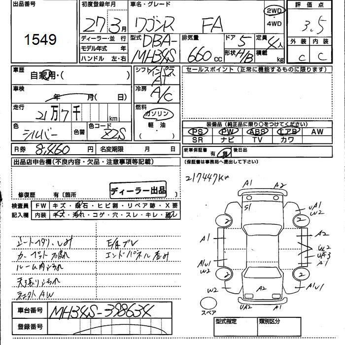 SUZUKI WAGON R - лот 1549