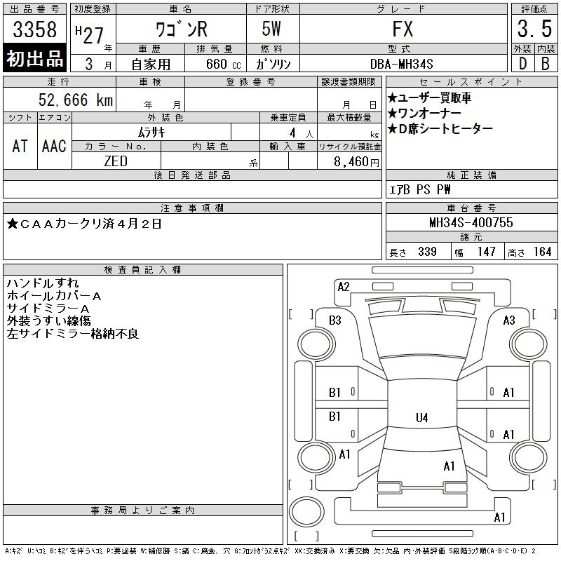 SUZUKI WAGON R - лот 3358