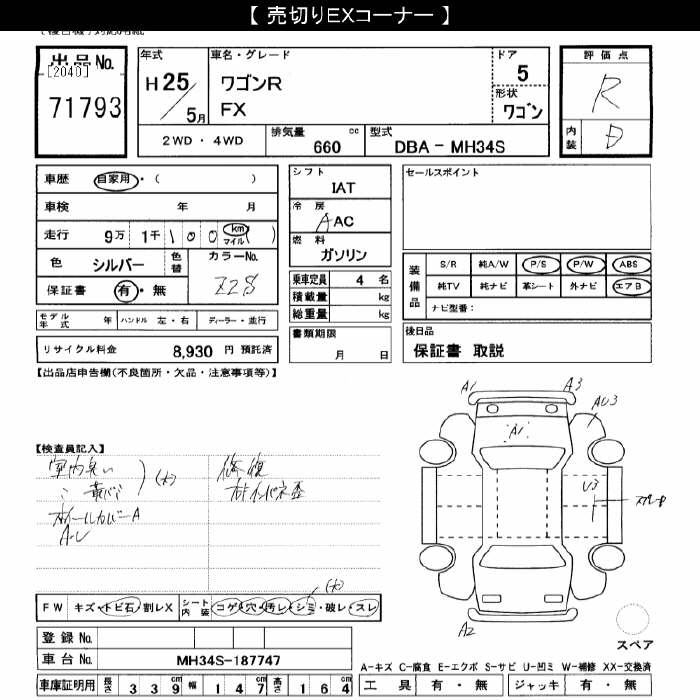 SUZUKI WAGON R - лот 71793