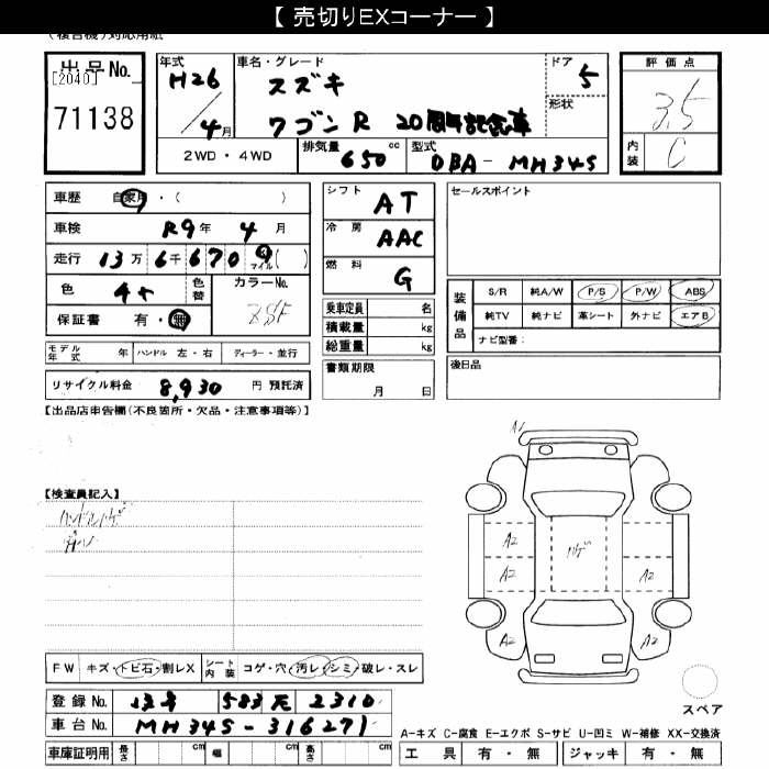 SUZUKI WAGON R - лот 71138