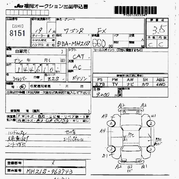 SUZUKI WAGON R - лот 8151