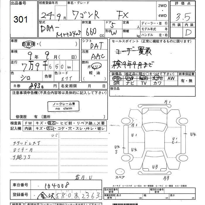 SUZUKI WAGON R - лот 301