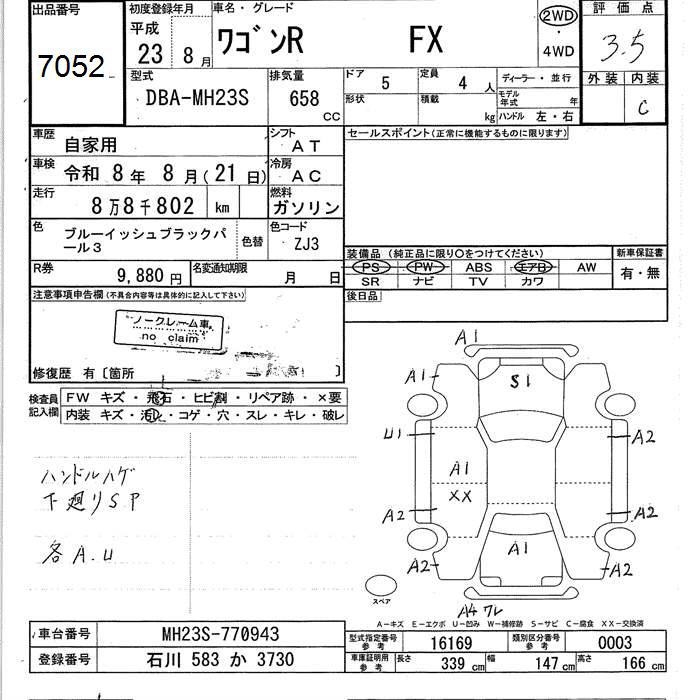 SUZUKI WAGON R - лот 7052