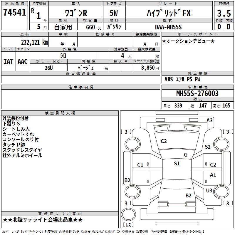 SUZUKI WAGON R - лот 74541