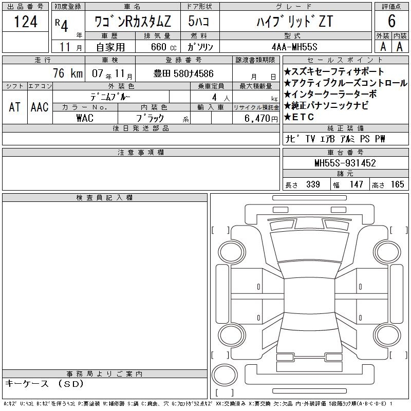 SUZUKI WAGON R CUSTOM Z - лот 124