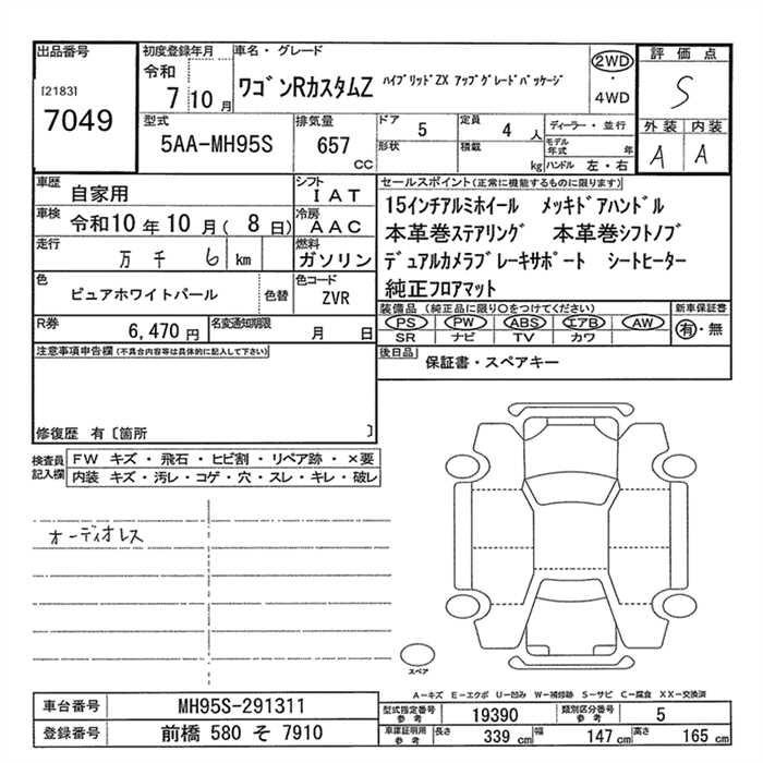 Все аукционы SUZUKI WAGON R CUSTOM Z