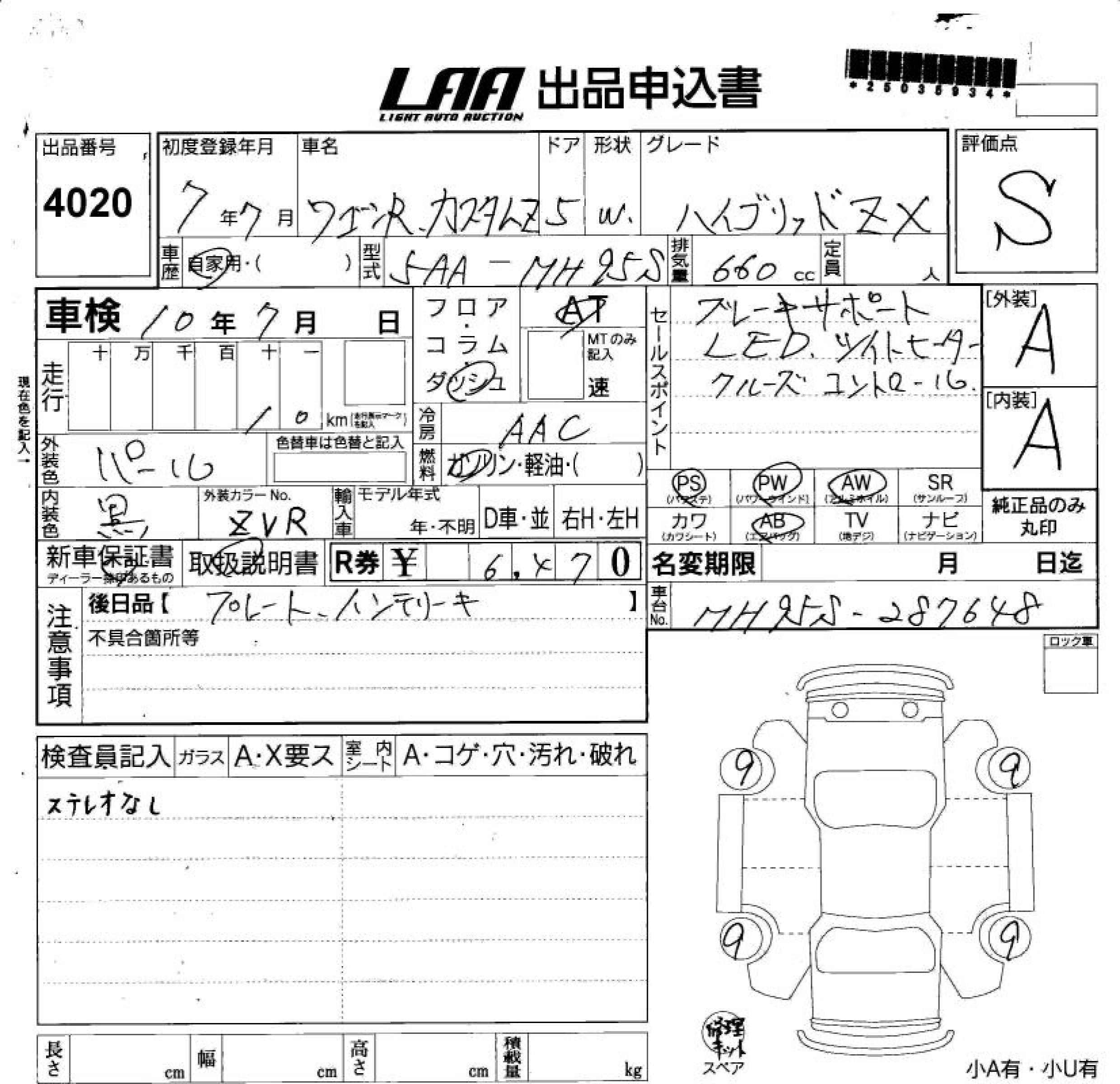 SUZUKI WAGON R CUSTOM Z - лот 4020